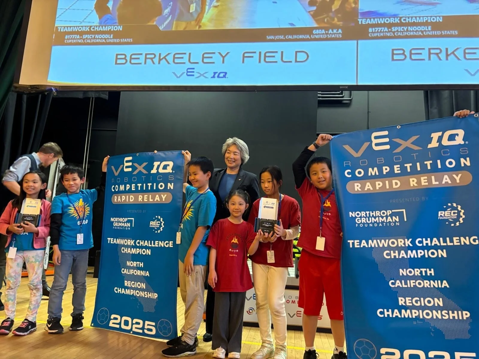 Highlights: The Northern California State Championship drew praise and recognition across media and academia, with UC Berkeley College of Engineering and Berkeley Haas sharing the event, and NBC Bay Area and ABC7 News featuring students in action. Key moments included Dean Tsu-Jae King Liu engaging with Robolabs leaders, Andy Schaafs of the REC Foundation interacting with teams and families, and Arya Sasikumar interviewed on the impact of robotics. Tesla vehicle displays, team photos, and student showcases further captured the excitement and innovation of the day.