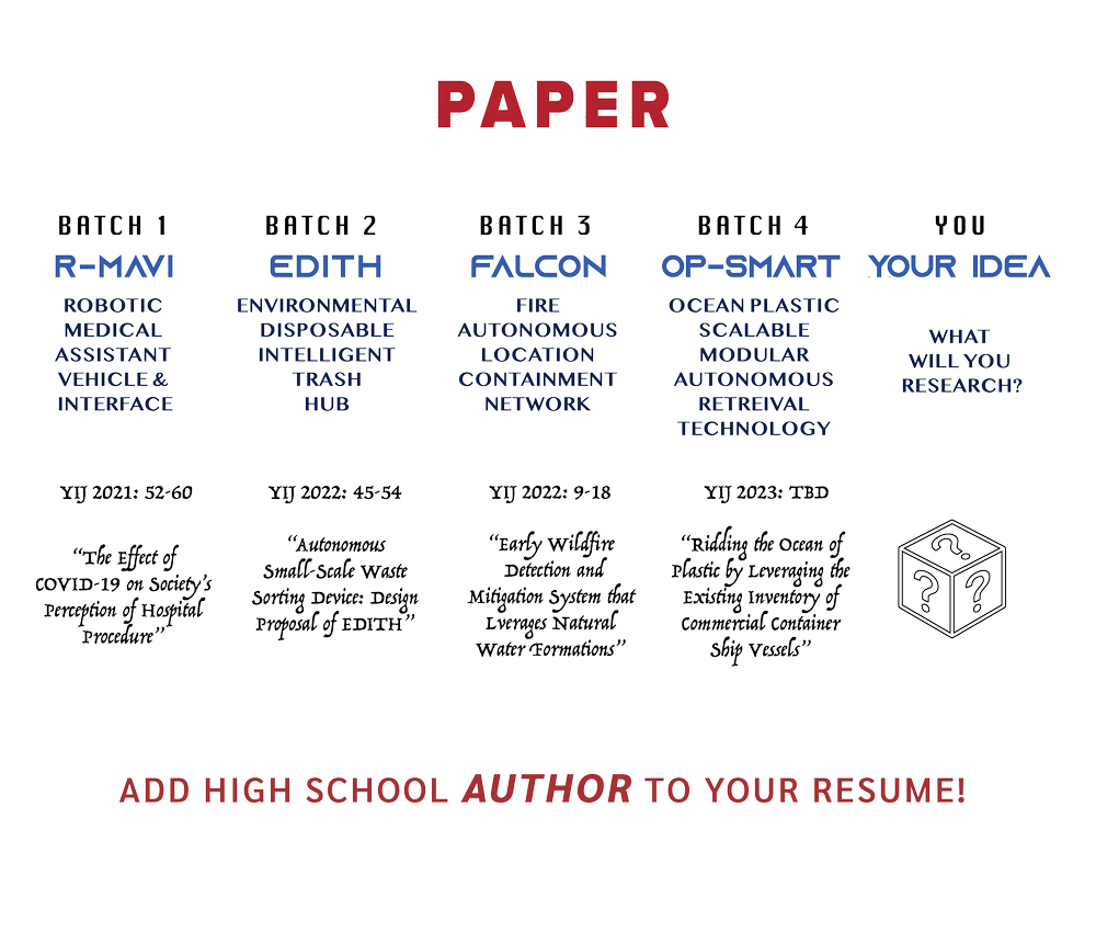 Part two of the Robolabs Innovation Academy track, our paper publication program is a one-year sprint that takes top high school students through the process of writing and publishing a scientific research paper. This program is a continuation of our patent inventor program where students use the findings from their patent journey to develop a research question and pursue it.